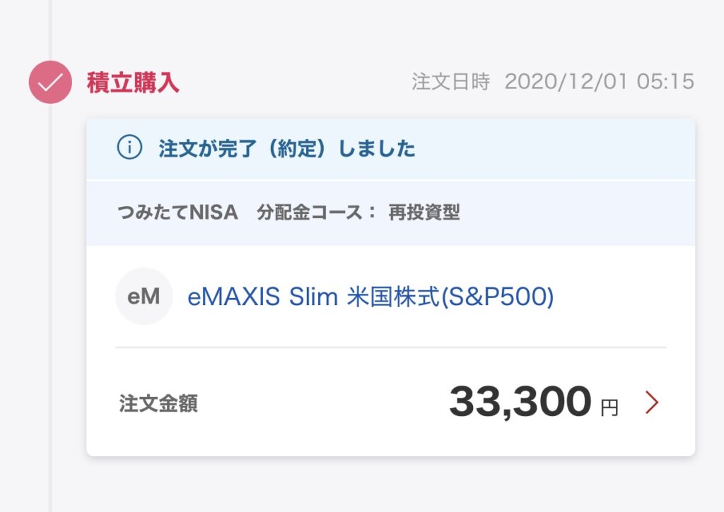 先日NISA口座で売却した資金を元に、200万円の注文を出しました。