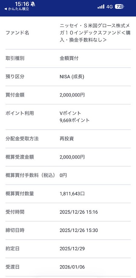 本日、2025年12月26日は、メガ10、FANG+の2026年NISA口座への買付初日でした。